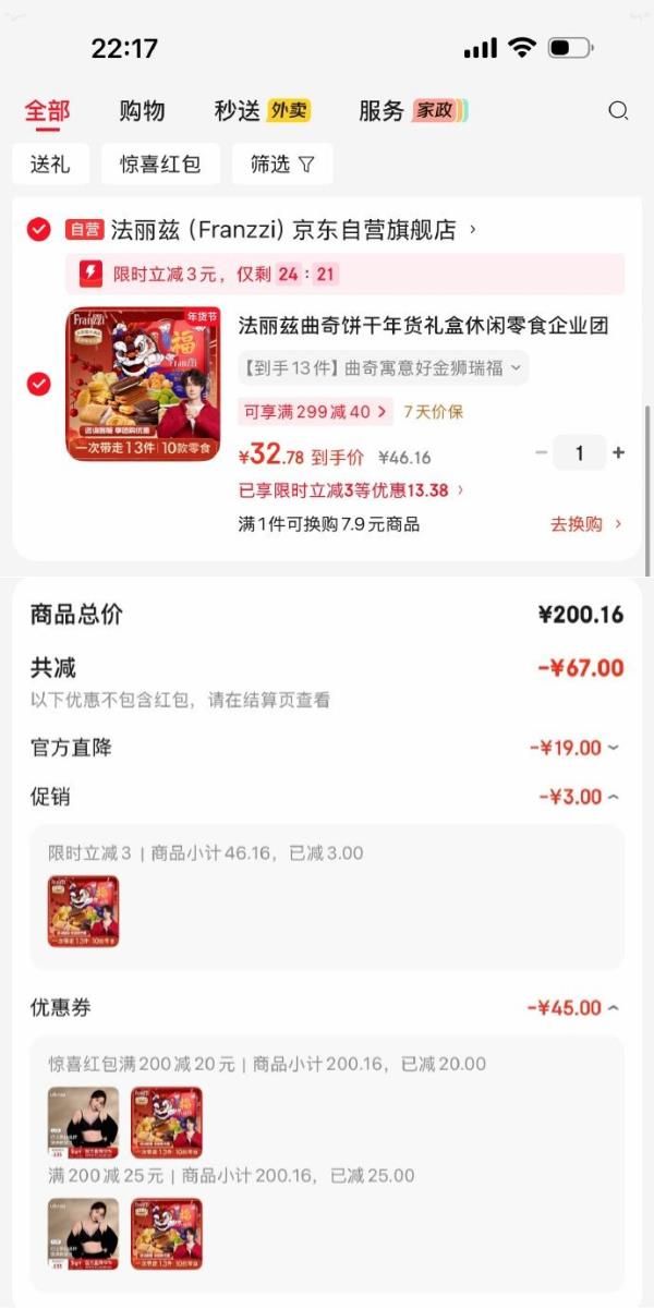 弹3立减,凑后【32.78】