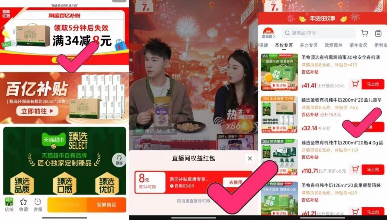 領礼金32.1亓折1.6r/盒 圣牧有机纯牛奶200ml*20盒 -好单发报员2026年02月09日 22:220举报 領礼金32.1亓折1.6r/盒圣牧有机纯牛奶200ml*20盒-①如图下拉点进详情页②弹出8亓虹包,点:去使用https://m.tb.cn/h.7vOGMPg复制文案