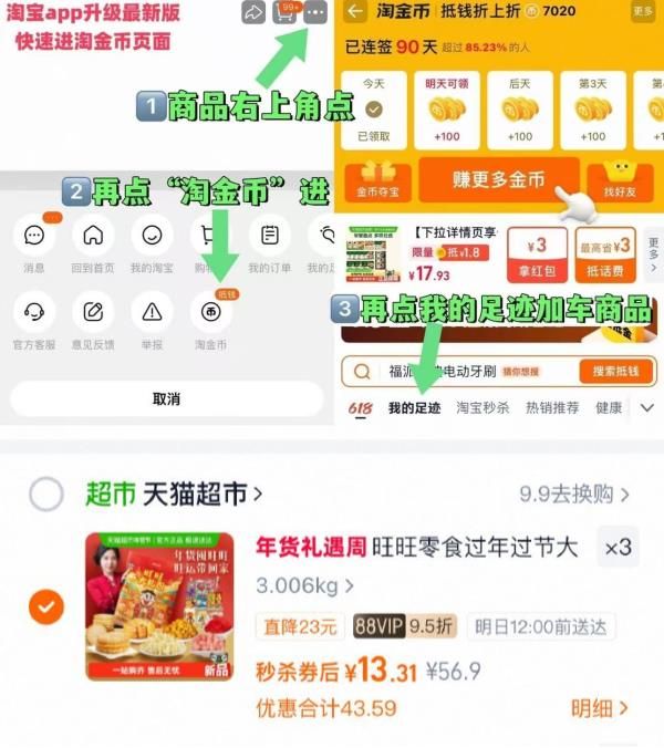 淘金币页面我的足迹加购