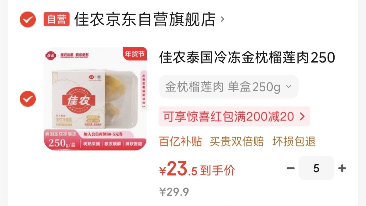 佳农泰国冷冻金枕榴莲肉250g 拍5件118.5元,折23.7一盒 领 好单发报员 2026年02月09日 22:50 0 举报 佳农泰国冷冻金枕榴莲肉250g拍5件118.5元,折23.7一盒领http://gf.my22.fun/TYntt3I拍https://u.jd.com/l6u2ala 复制文案