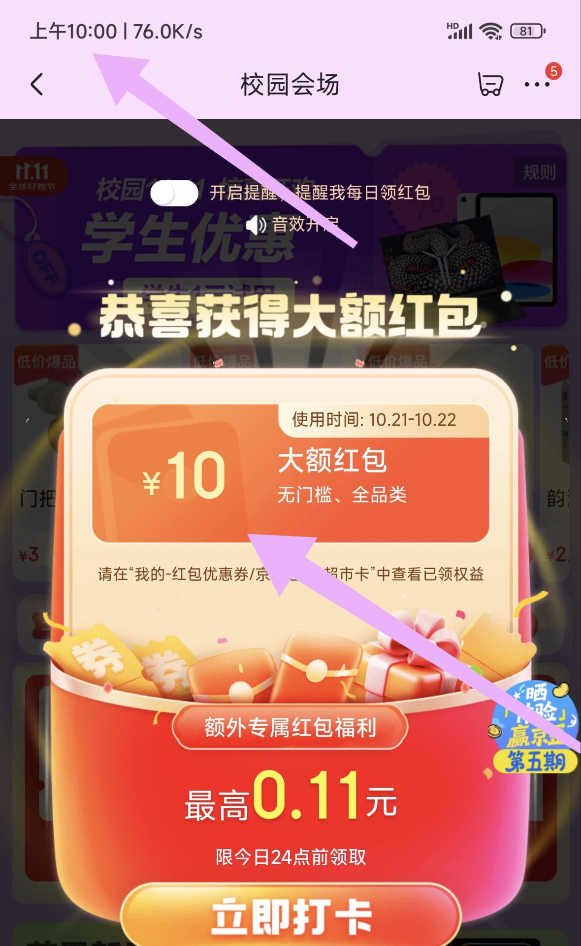 需提前来回领3次红包才加码