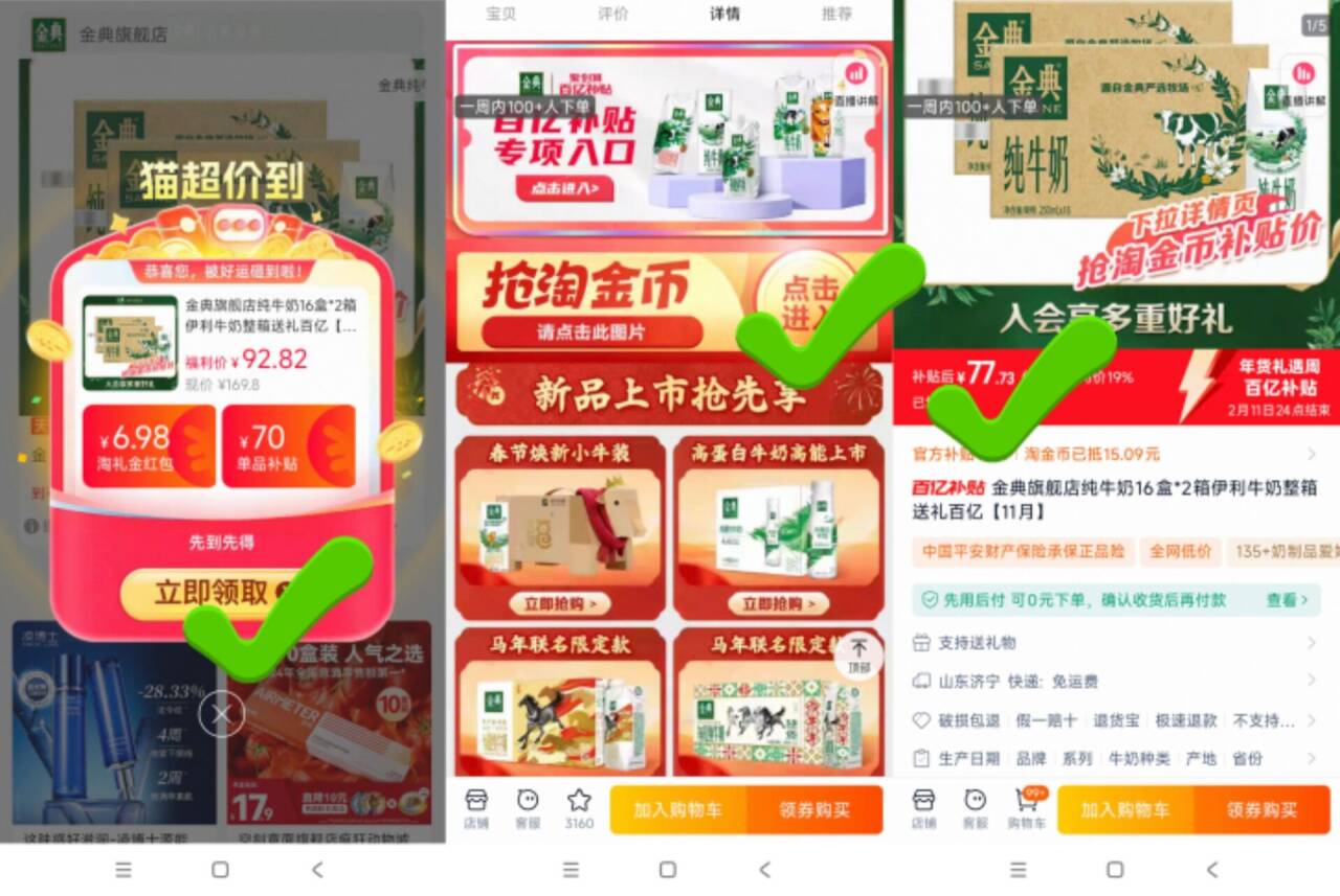 38元/箱金典官旗纯牛奶250ml*16盒2箱77元 下拉详情抵扣1500金币拍 - 好单发报员 2026年02月10日 11:22 0 举报 38元/箱金典官旗纯牛奶250ml*16盒2箱77元下拉详情抵扣1500金币拍https://m.tb.cn/h.7EydLui-发12-1月日期,今天最后一天明天就打烊不发货了 复制文案