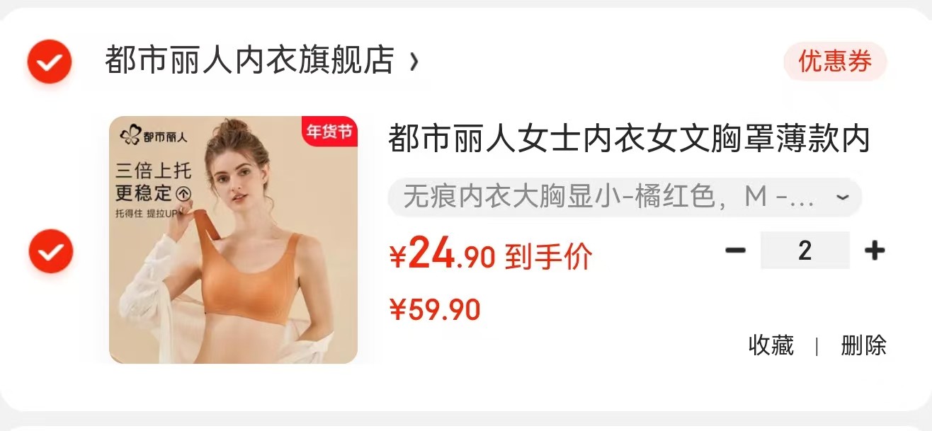 都市丽人 女士内衣女文胸罩薄款内衣,任选2件【49.8】
