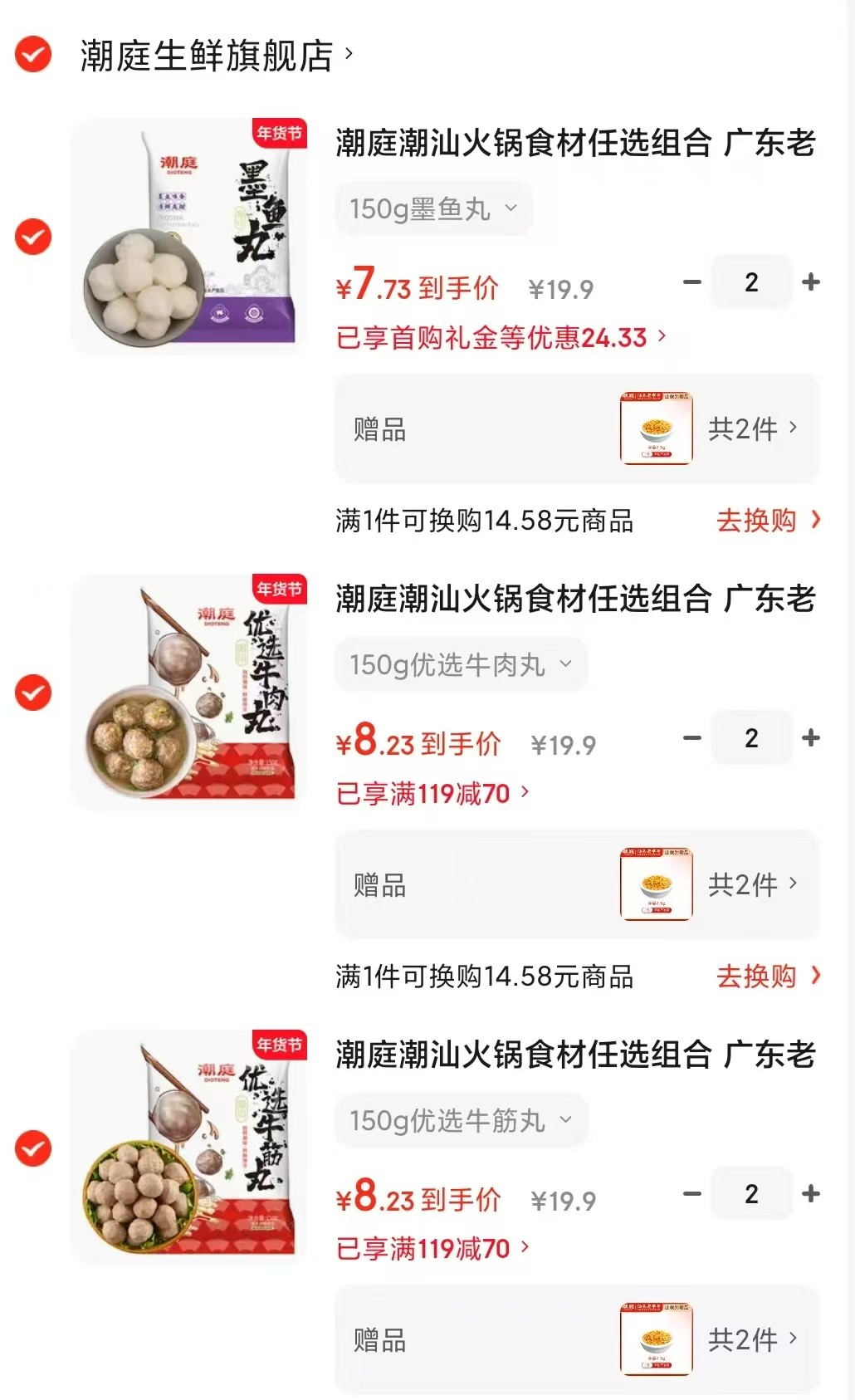 潮庭 潮汕火锅食材任选组合 150g优选牛筋丸,任选6件【48.4】