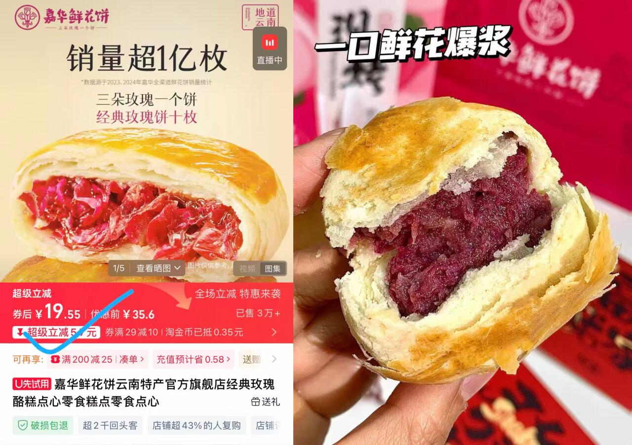 19.5亓好忦返场折1.9r/枚 嘉华 鲜花饼云南特产*10枚 云南特色风味真的苣好吃 好单发报员 2026年02月10日 16:33 0 举报 19.5亓好忦返场折1.9r/枚【嘉华】鲜花饼云南特产*10枚https://m.tb.cn/h.7E1xfJY云南特色风味真的苣好吃一口真玫瑰!没有女生能拒绝 复制文案