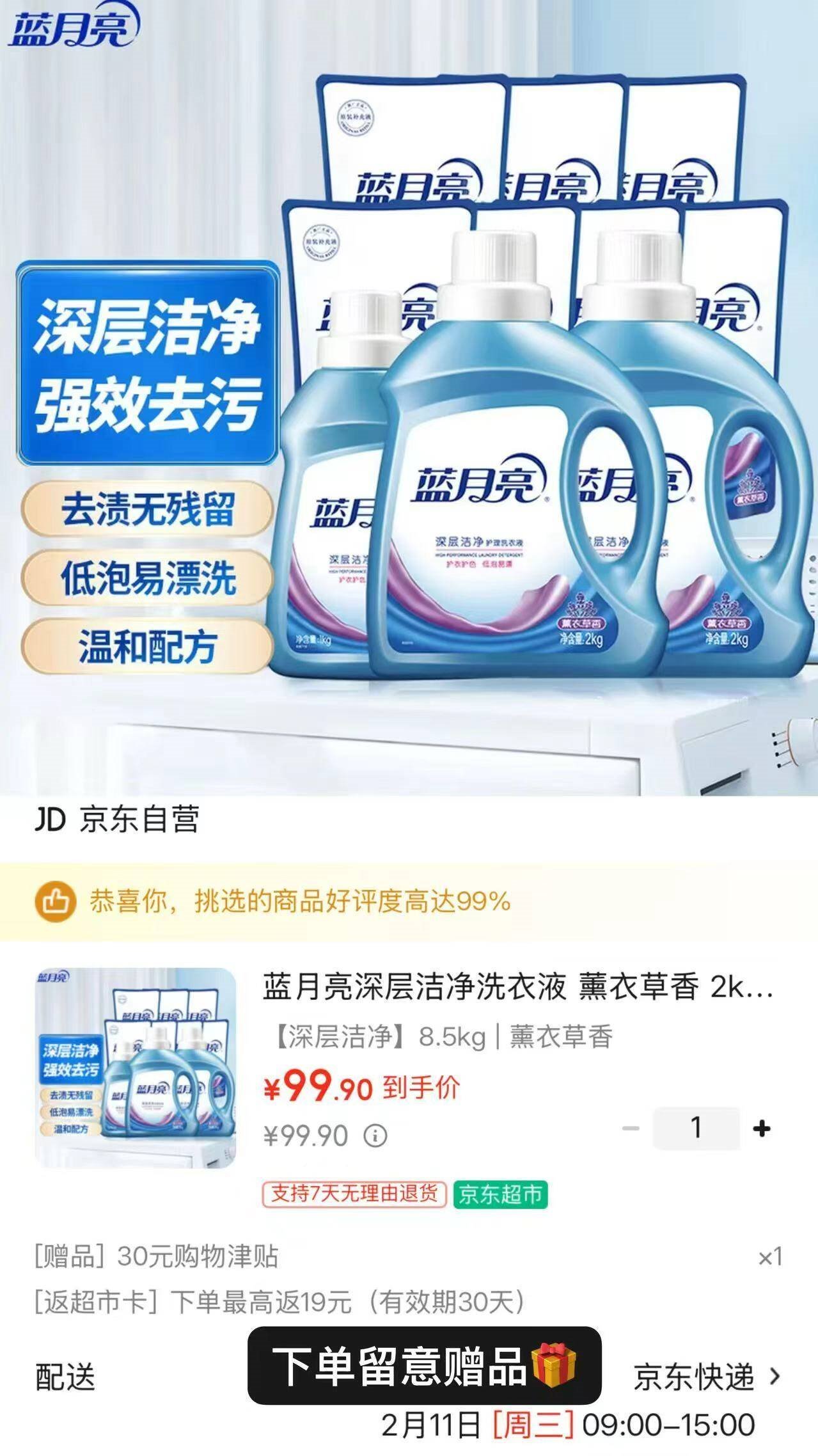 99.9亓自营包邮,赠19超市卡