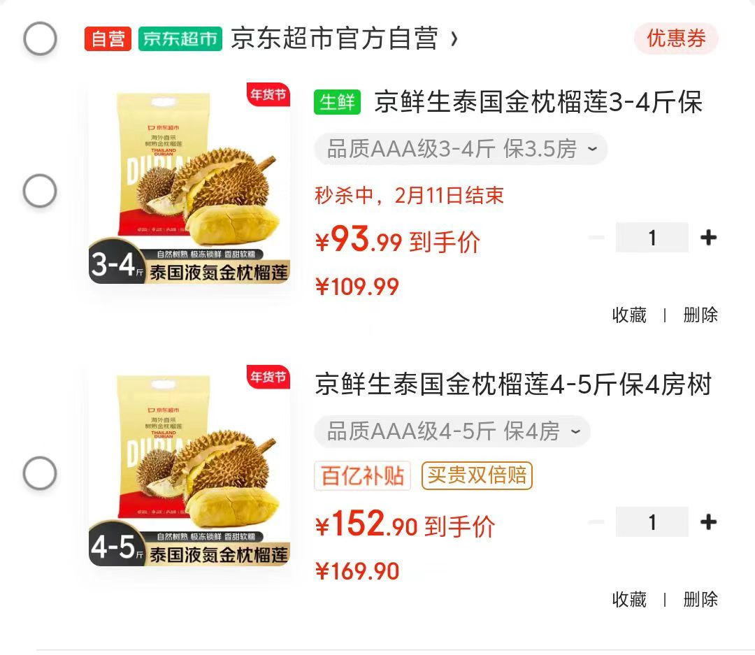 京鲜生 金枕液氮榴莲
