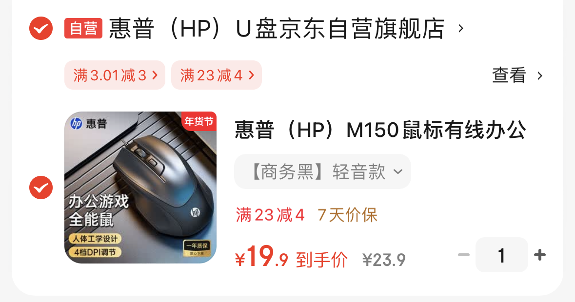 惠普 工学G100鼠标有线轻音款