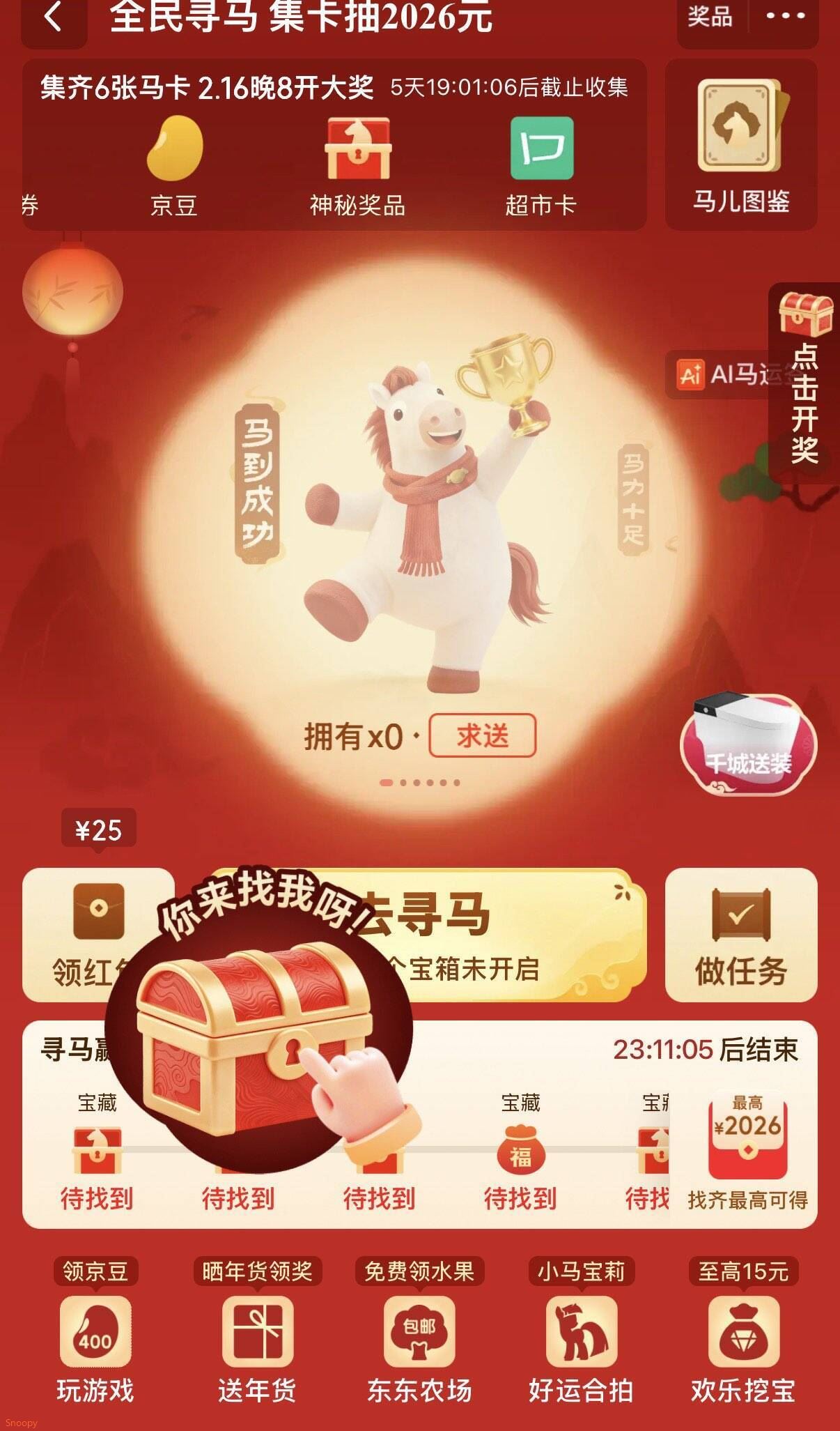 JD 新一轮全民寻马活动 - 收集6kuan不同的“马卡” 好单发报员 2026年02月11日 00:51 0 举报 JD 新一轮全民寻马活动-https://u.jd.com/lOzPxWZ 收集6kuan不同的“马卡”2月16日20点开奖 复制文案