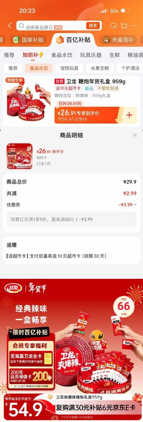 卫龙辣条 魔芋爽 亲嘴烧 马年鞭炮礼盒959g