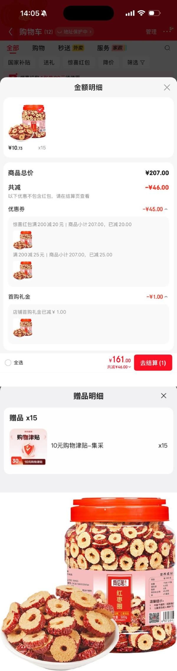 每件10.73/赠10元购物津贴