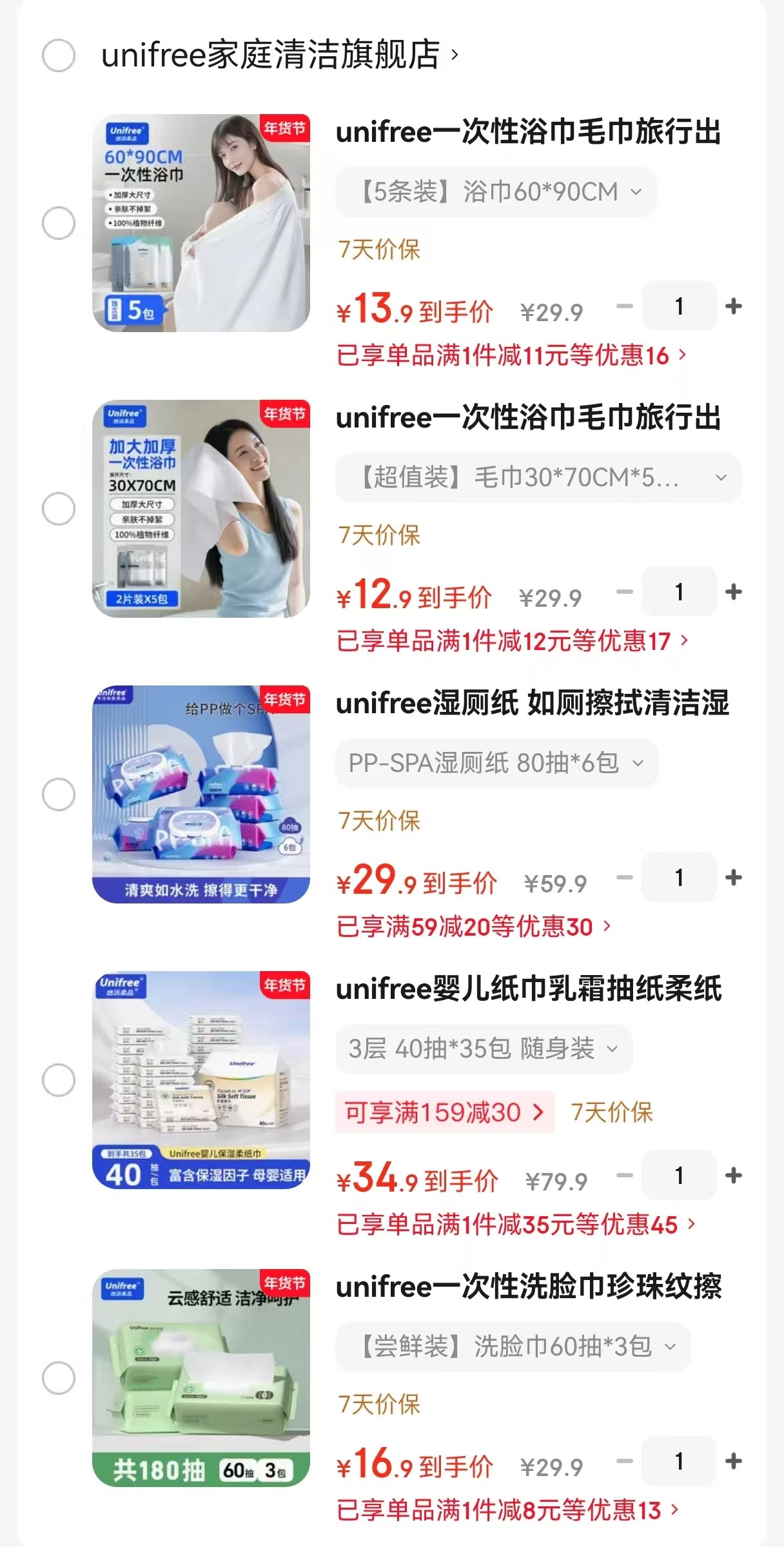 unifree一次性毛巾30*70CM*5包10条【12.9】https://u.jd.com/l6Gx5Yo
