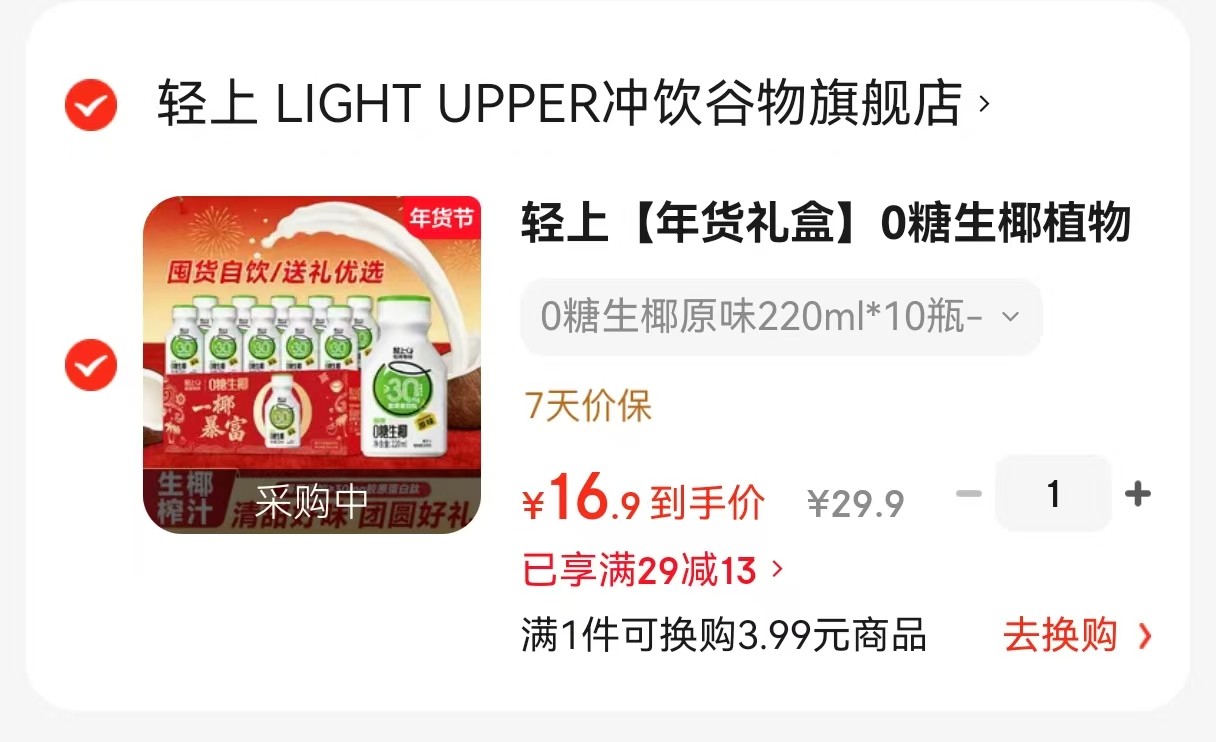 轻上【年货礼盒】0糖生椰原味220ml*10瓶【16.9】