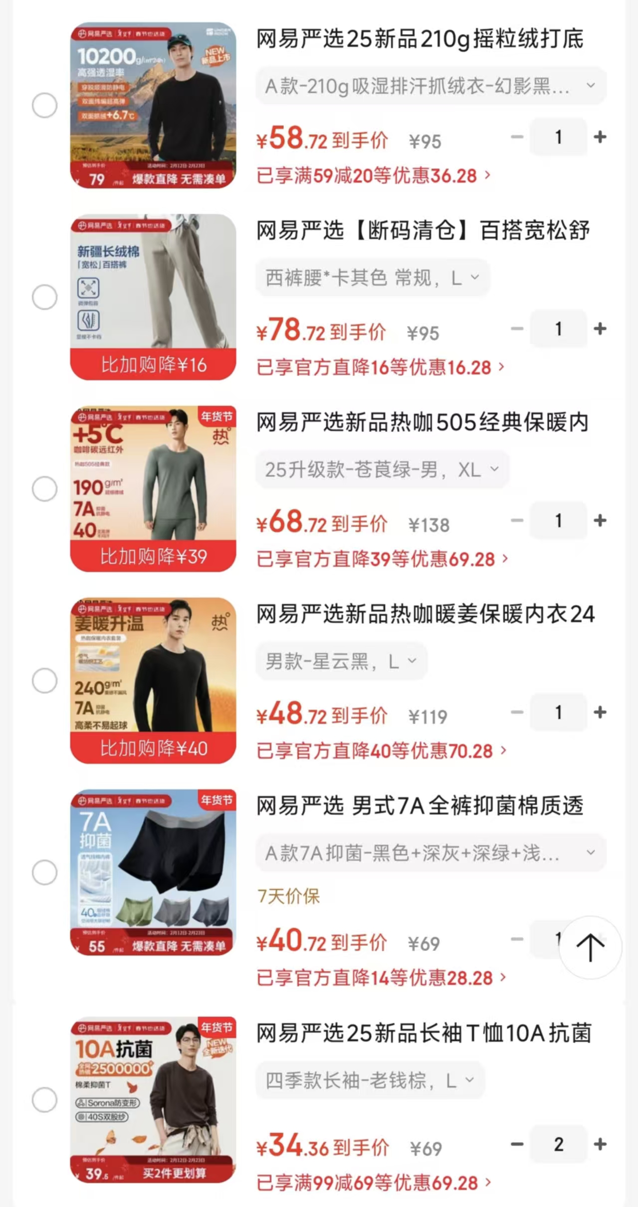 网易严选打底衫/裤子/保暖内衣/内裤合集