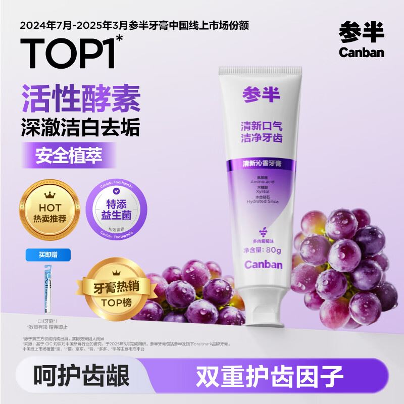 自营参半 活性酵素牙膏80g支