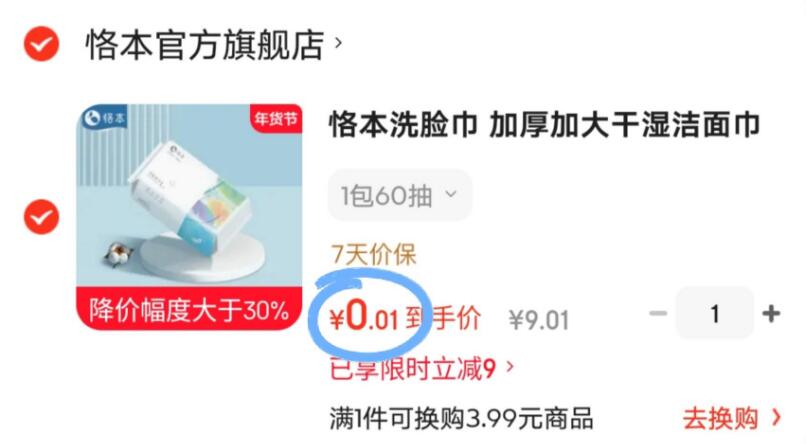 0亓速!恪本洗脸巾60抽1包