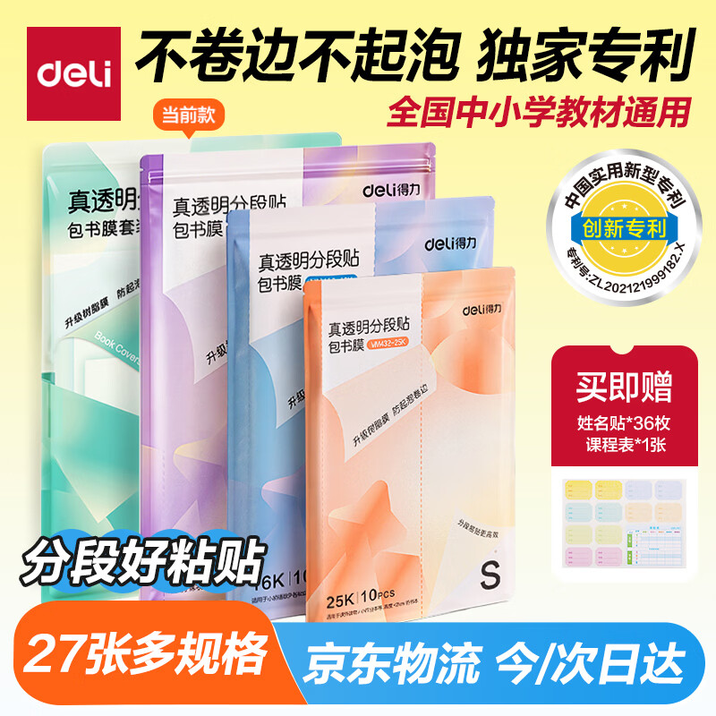自营得力 多规格分段式包书皮 27张