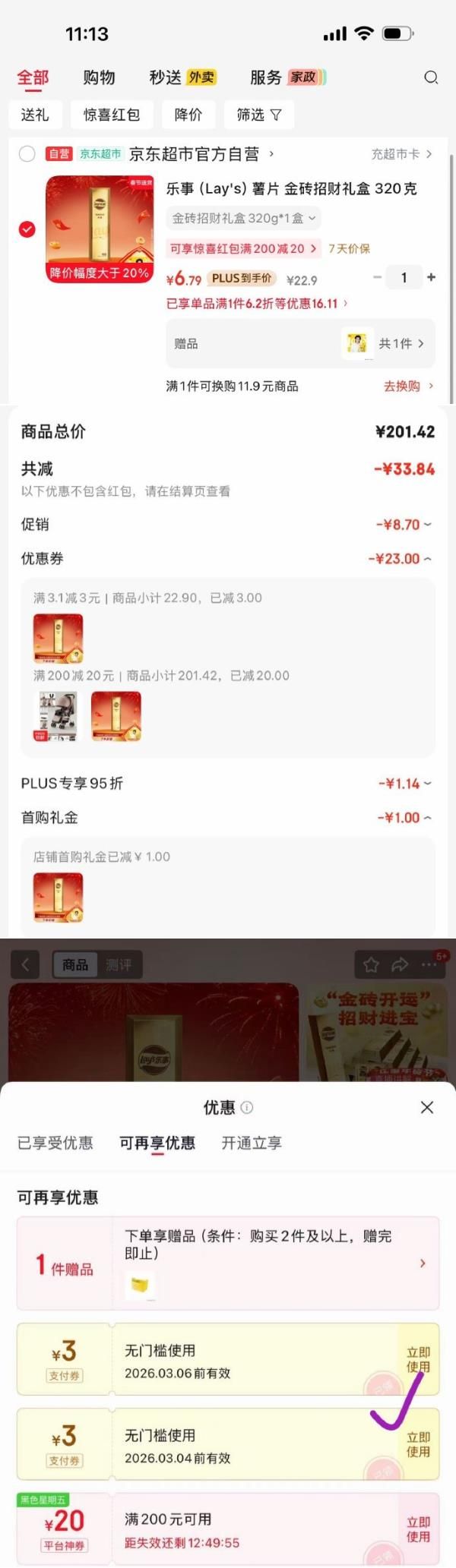 砸3券,叠1首单,凑后6.79