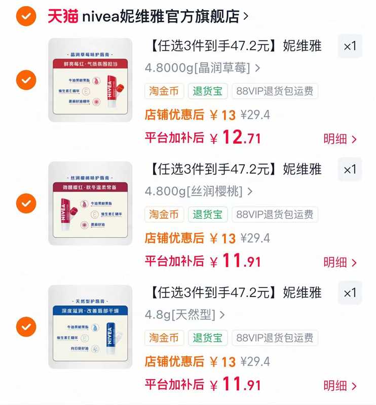 妮维雅润唇膏 拍3. 漏9.1/支 妥妥死皮克星好单发报员2026年02月14日 17:160举报 妮维雅润唇膏拍3.漏9.1/支 妥妥死皮克星右上角"..."叠桃币线下哪有这价清爽保湿不粘腻 干唇党必备┄https://m.tb.cn/h.7xw6dM0复制本段话到桃宝打开加勾复制文案