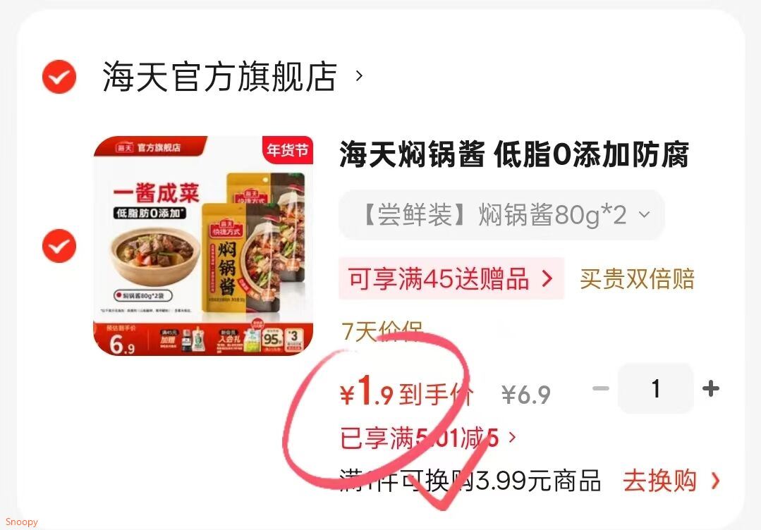 1.9元2袋海天焖锅酱