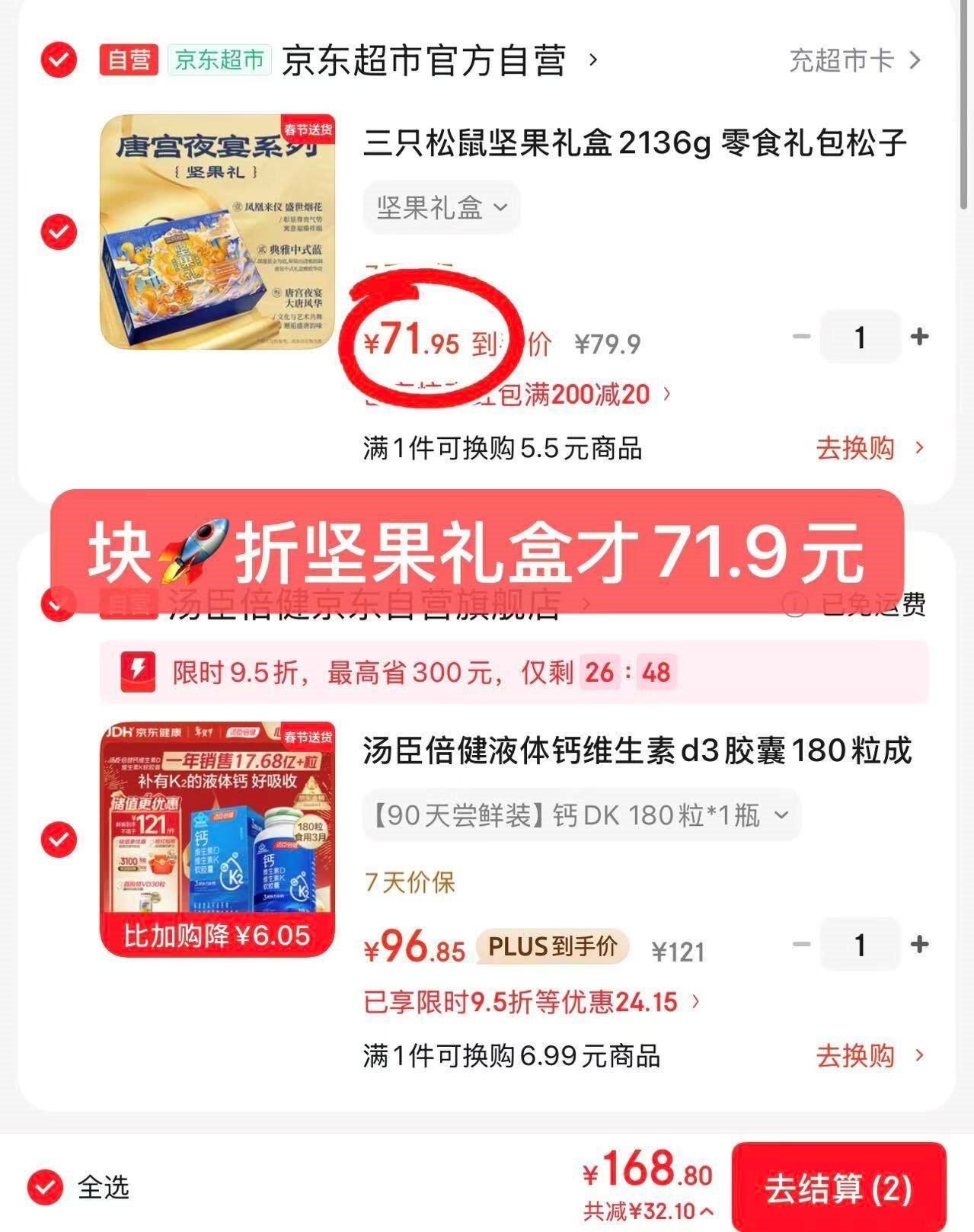 坚果礼盒付71.9亓,高端款