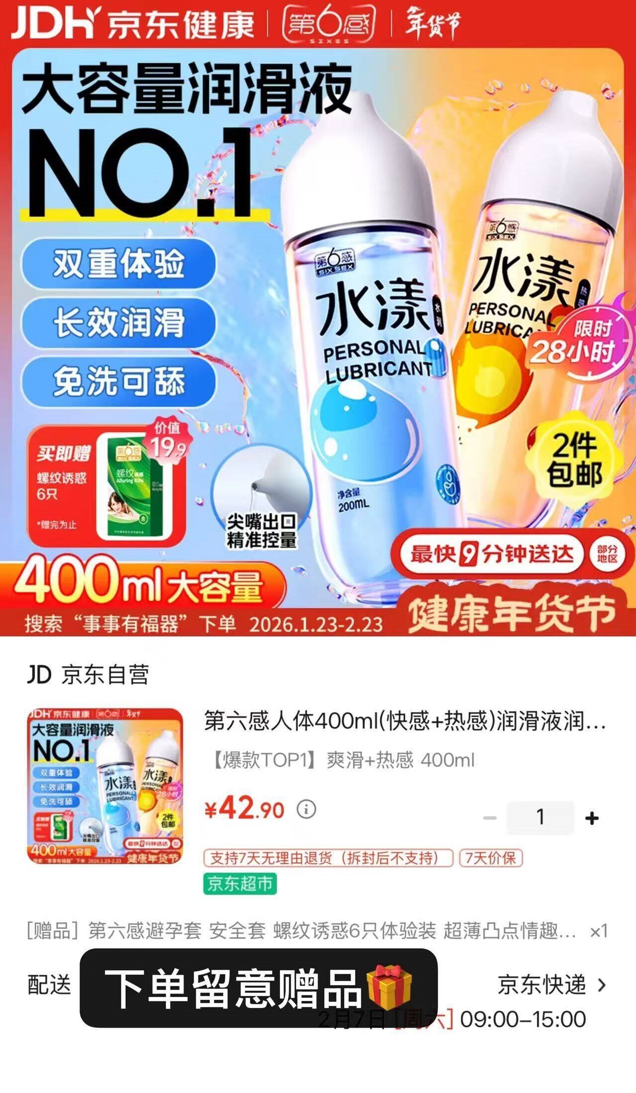 【自营】第六感 女润.滑液400ml