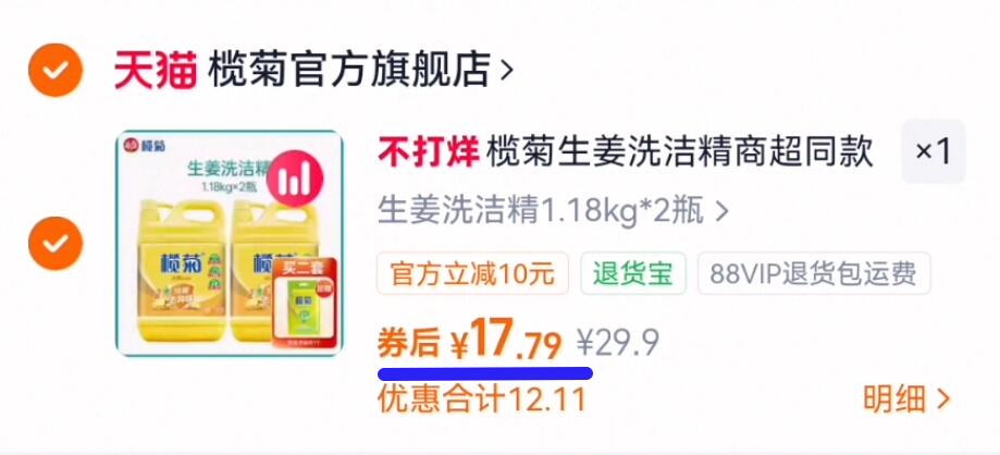 8.5亓/桶拍第1个选项 拍下17.7亓2瓶赠洗碗布 1 榄菊 生姜洗洁精1.18kg 2桶 好单发报员 2026年02月16日 00:24 0 举报 8.5亓/桶拍第1个选项拍下17.7亓2瓶赠洗碗布 1【榄菊】生姜洗洁精1.18kg 2桶https://m.tb.cn/h.7DKk94E 复制文案