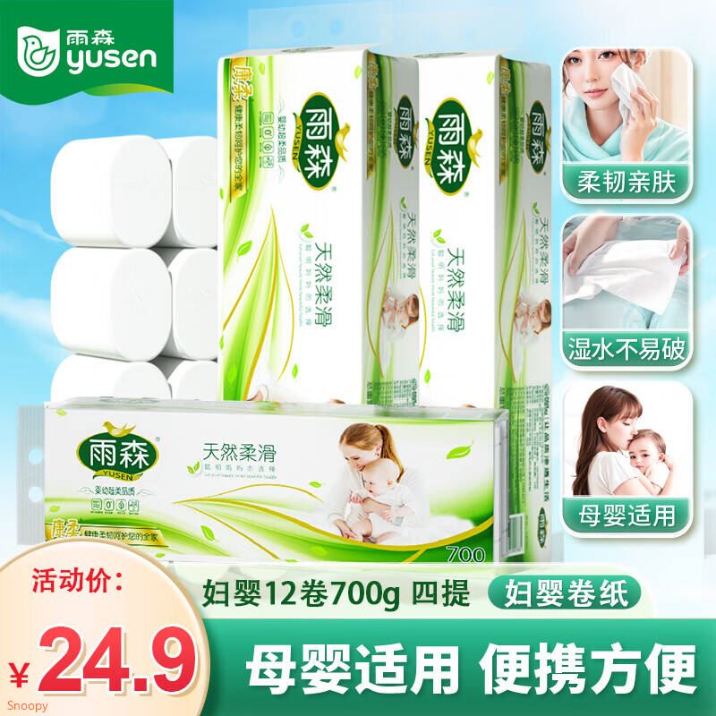 雨森 天然柔滑卷纸 6层58.3g*12卷*4提