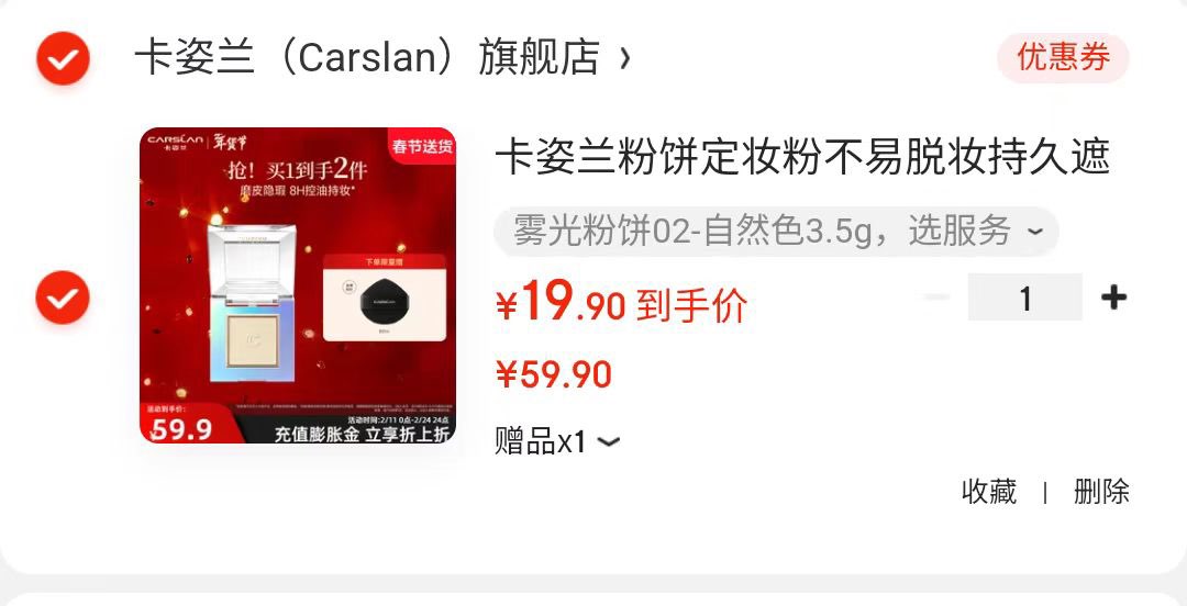 卡姿兰雾光粉饼,19.9