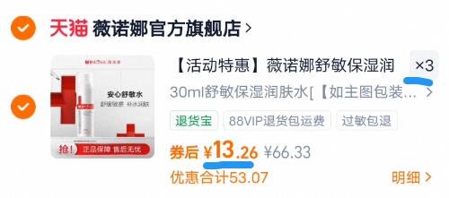 13.3亓/瓶神圿换季必备 拍3件39.9亓!千万粉底官店 薇诺娜 舒敏保湿水3支共90ml好单发报员2026年02月20日 20:570举报 13.3亓/瓶神圿换季必备拍3件39.9亓!千万粉底官店【薇诺娜】舒敏保湿水3支共90mlhttps://m.tb.cn/h.7yynMJP复制文案