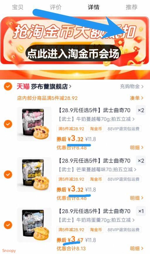 3.3亓/盒神圿叠3淘金币 下拉详情去金币会场拍5件=16.9亓 莎布蕾 黄油曲奇饼干5盒 好单发报员 2026年02月20日 22:03 0 举报 3.3亓/盒神圿叠3淘金币下拉详情去金币会场拍5件=16.9亓【莎布蕾】黄油曲奇饼干5盒https://m.tb.cn/h.7yRtO9q 复制文案