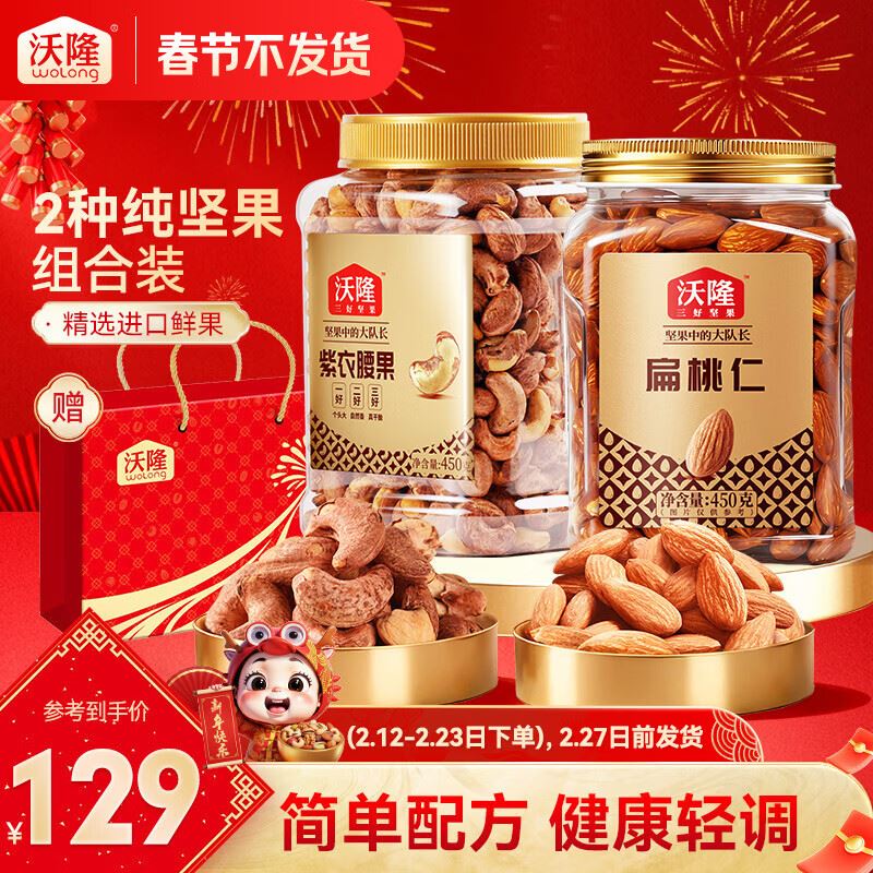 沃隆 扁桃仁450g 紫衣腰果450g