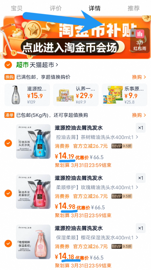 14.5亓/瓶神圿叠3.5金币 下拉详情进金币会场任拍3件43.3亓 滋源 洗发水护发素发膜合集好单发报员2026年02月23日 15:170举报 14.5亓/瓶神圿叠3.5金币下拉详情进金币会场任拍3件43.3亓【滋源】洗发水护发素发膜合集https://m.tb.cn/h.7AbAHfK复制文案