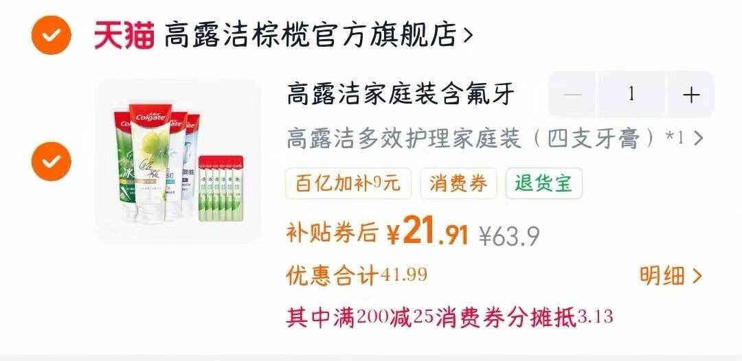 高露洁牙膏组合 到手21.9元