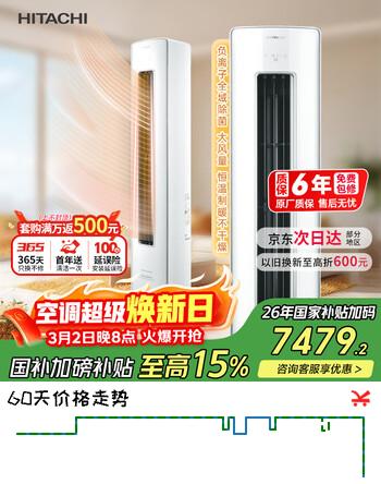 【7折】日立(HITACHI)空调白熊君GH 3匹新1级能效 铜管变频冷暖全域除菌圆柱立式柜机国家补贴/以旧换新RAF/C-GH30PHAPC