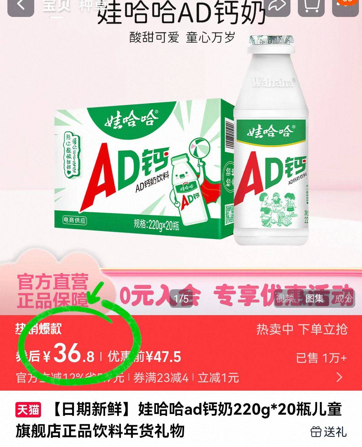 36.8亓!单瓶¥1.8 娃哈哈AD钙220g*20瓶 酸酸甜甜一口回到小时候 好单发报员 2026年03月03日 22:27 0 举报 36.8亓!单瓶¥1.8娃哈哈AD钙220g*20瓶酸酸甜甜一口回到小时候不变的味道 喝完心情娃哈哈https://m.tb.cn/h.i1M7Ppt 复制文案