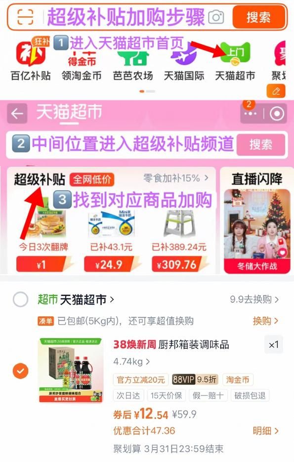 进入超级补贴领39-6红包,搜索商品加购