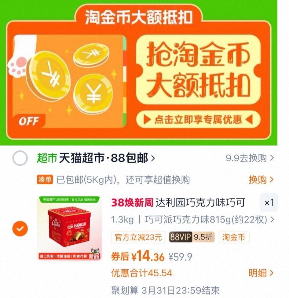 0.6元/枚下拉拍vip 14.3元 达利园 巧克力味巧可派22枚/815g 好单发报员 2026年03月04日 22:06 0 举报 0.6元/枚下拉拍vip 14.3元达利园 巧克力味巧可派22枚/815ghttps://m.tb.cn/h.i1SjykA 复制文案
