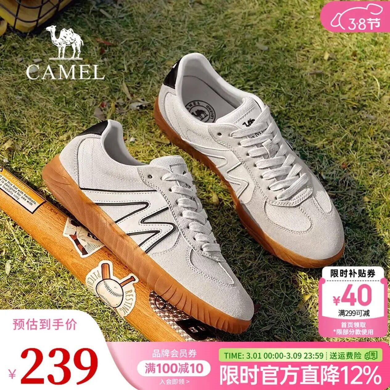 骆驼 男士平底复古德训鞋