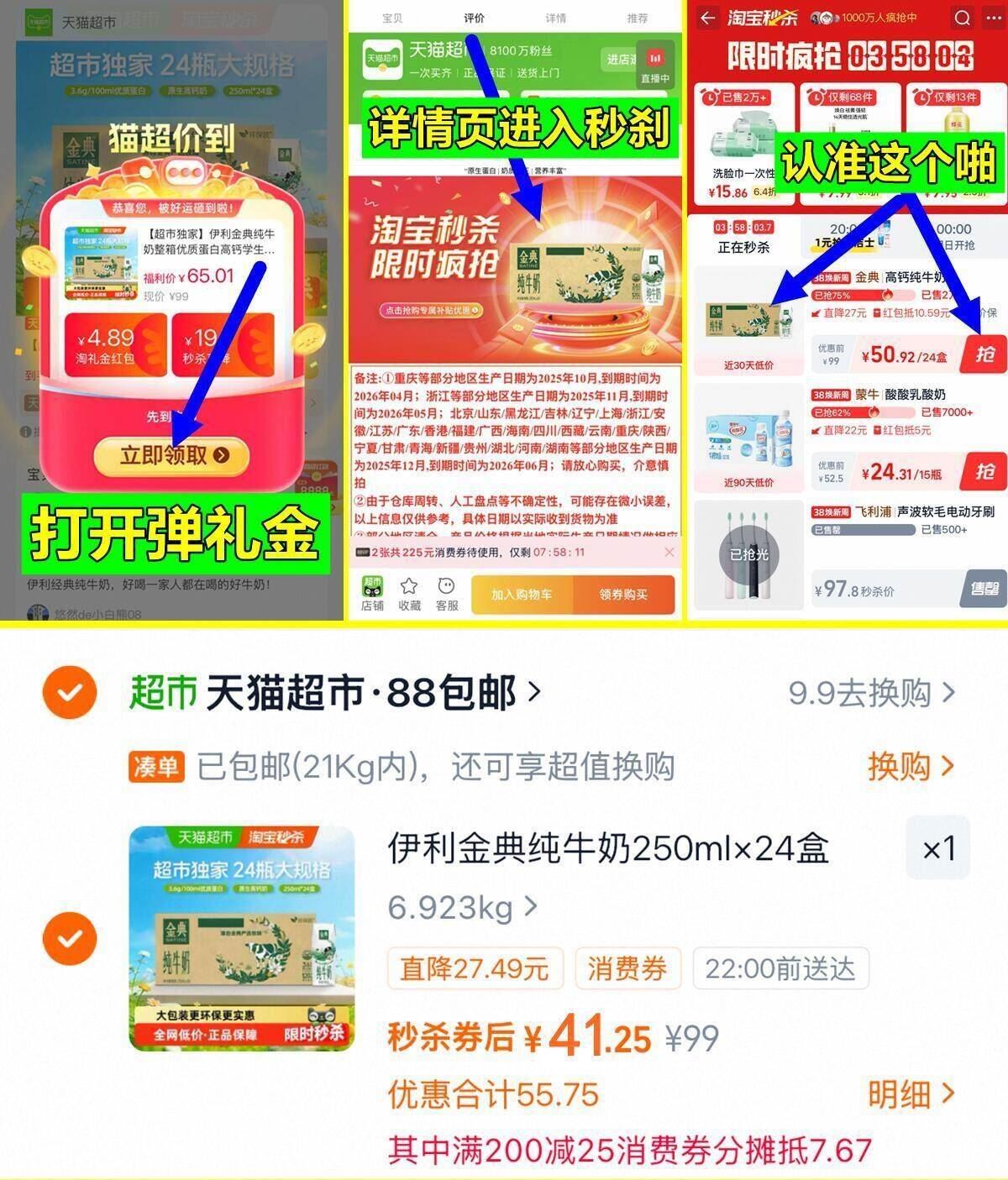 奶车神价,天猫超市金典纯牛奶,