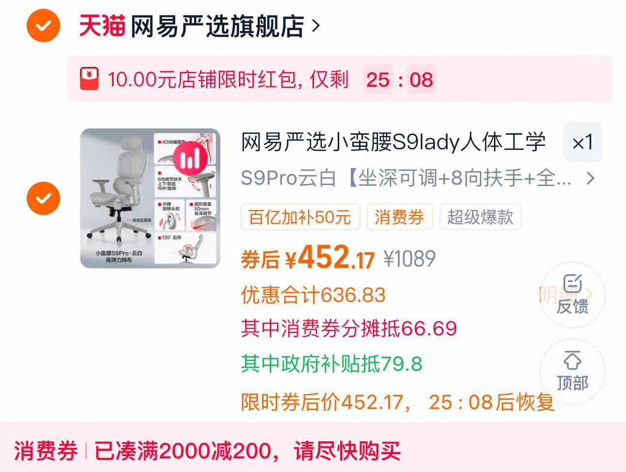 88vip领200肖菲券 弹10亓虹包 右上进金币 抵21.7亓 拍1089选项 好单发报员 2026年03月09日 15:20 0 举报 88vip领200肖菲券弹10亓虹包 右上进金币抵21.7亓 拍1089选项叠礼金 国补 凑后452.1亓网易严选小蛮腰S9Lady人体工学椅https://m.tb.cn/h.iWS3ELf 复制文案