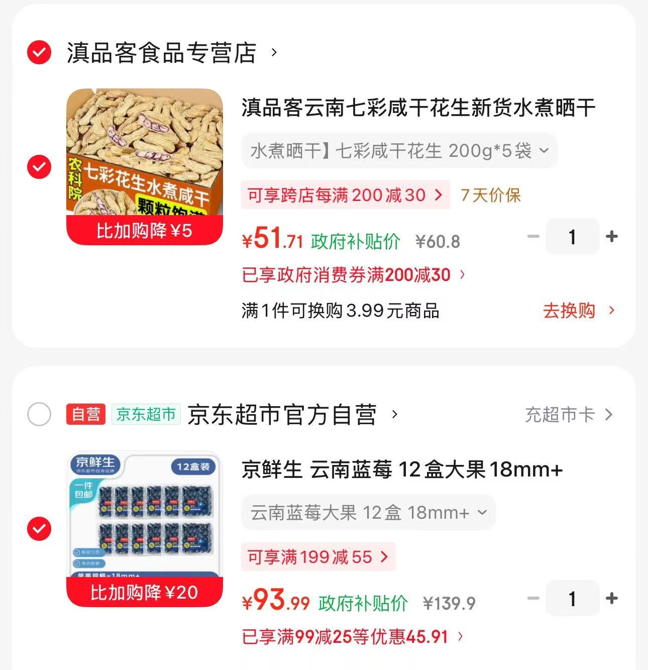 页面领云南补贴 领99-25 京鲜生 云南蓝莓 12盒大果18mm 125g/盒,凑后 93