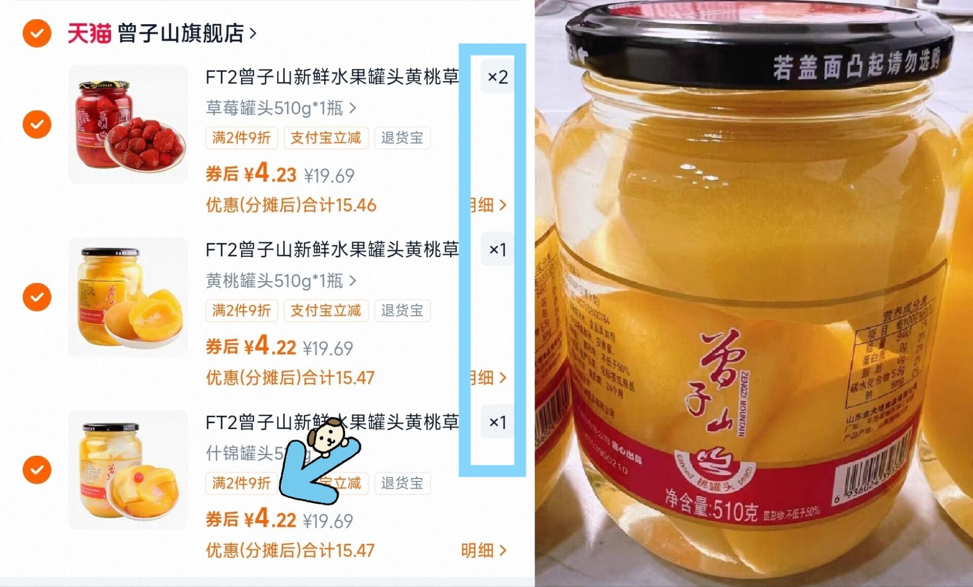 曾子山草莓/黄桃罐头拍4罐