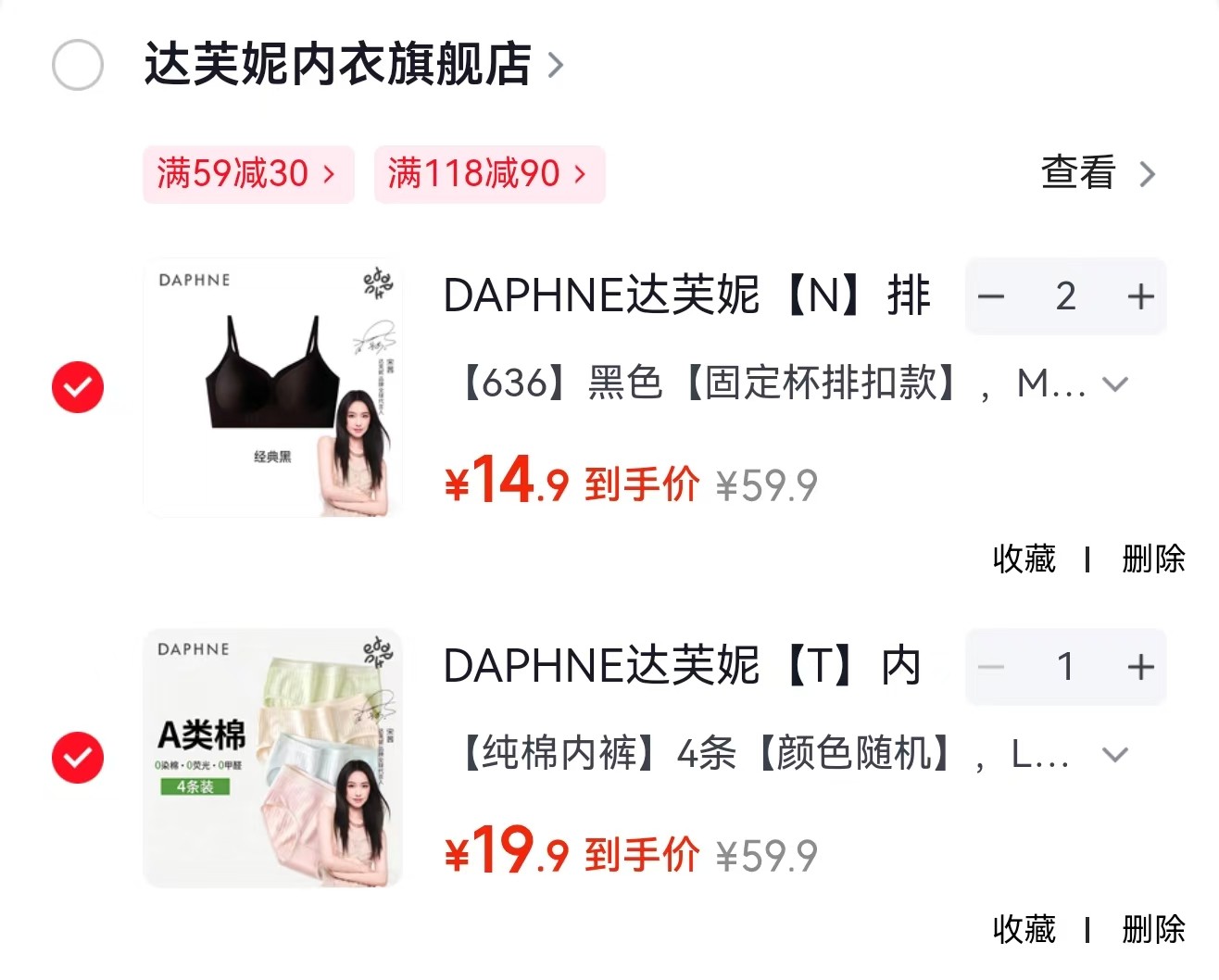 达芙妮 排扣内衣女小胸聚拢无钢圈,任选2件【29.9】