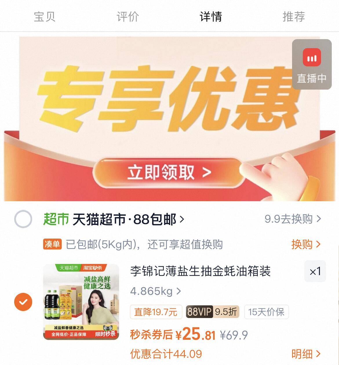 25-反3卡=22亓 下拉拍 李锦记薄盐生抽1.52kg*2 金蚝油550*2好单发报员2026年03月09日 22:340举报 25-反3卡=22亓下拉拍李锦记薄盐生抽1.52kg*2 金蚝油550*2https://m.tb.cn/h.i3qnnf8复制文案
