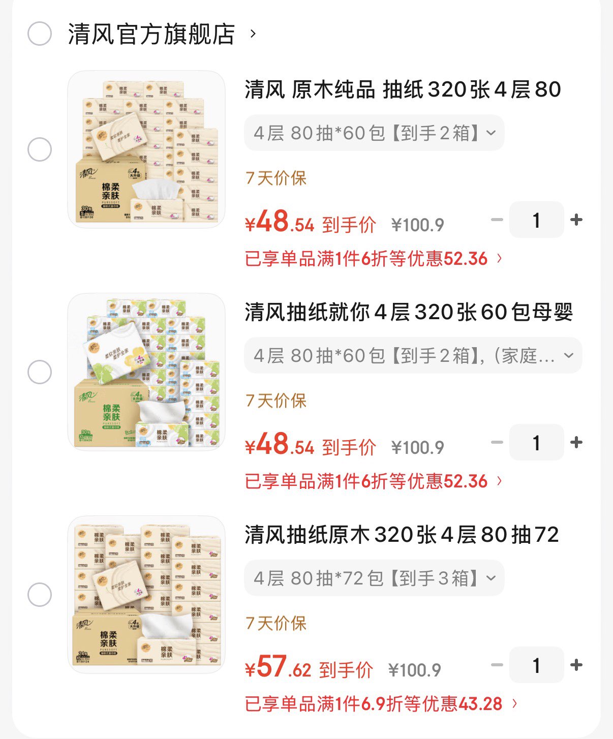 清风原木纯品抽纸80抽*60包