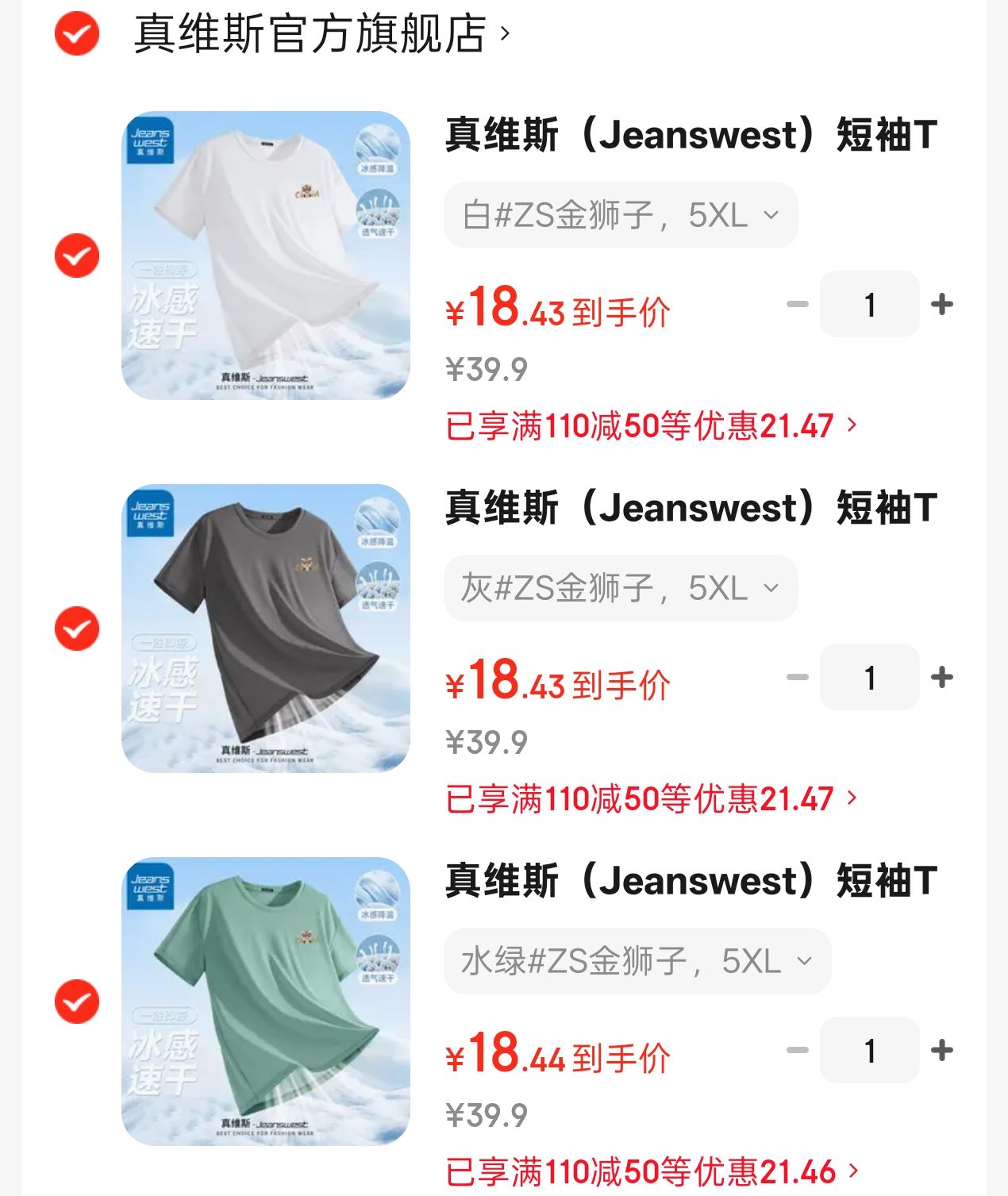 真维斯速干衣 3件55亓