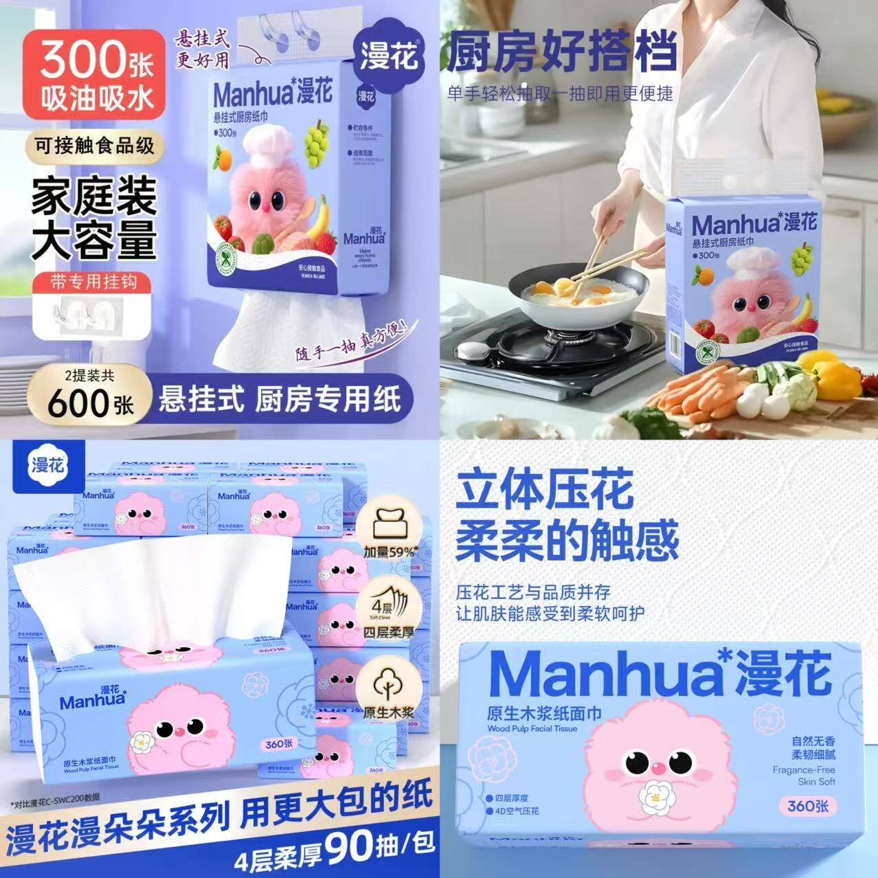 漫花 挂式厨房纸巾150抽*2提