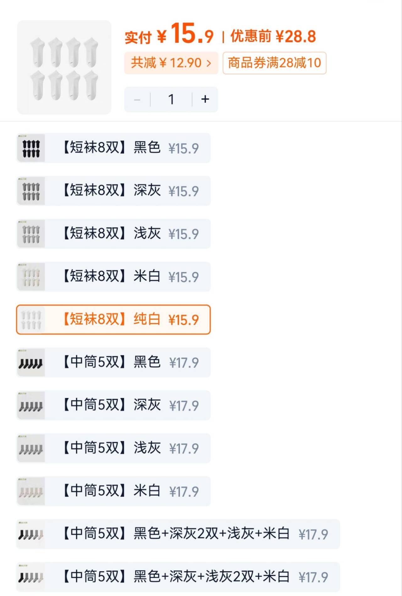 短袜组合任选15元.9!