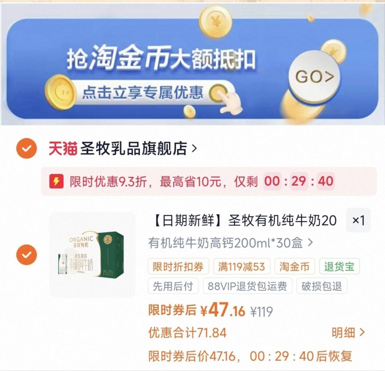 47亓下拉详情拍 圣牧 有机纯牛奶200ml*30盒 好单发报员 2026年03月11日 21:09 0 举报 47亓下拉详情拍【圣牧】有机纯牛奶200ml*30盒https://m.tb.cn/h.i3JBVFt 复制文案